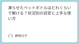 暑い季節になると、ペットボトルを凍らせて持ち歩く人が増えますよね。特に通勤・通学、レジャーや外出のときに、冷たい飲み物があるととても助かります。とはいえ、「どれくらいで溶けるの?」「外に置いたらすぐ溶けちゃう?」「なかなか飲めない…」など、...