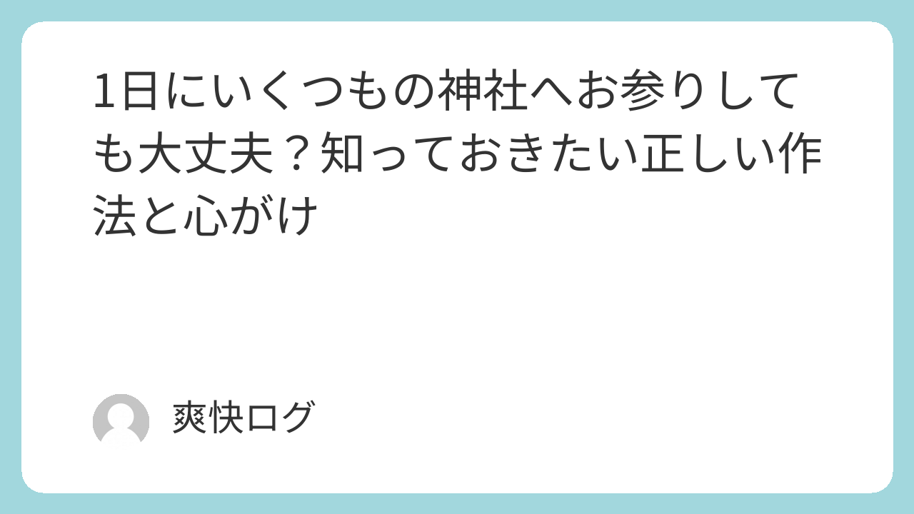 神道の根本は調和と共存にあり、神々は互いを尊重し合っています。神様を“競わせる”ような気持ちでなければ、複数参拝はむしろ心を清め、より謙虚な気持ちを育てる機会になります。例えば旅の途中で複数の神社を巡ることで、それぞれの土地の神様への感謝を深めるきっかけにもなるでしょう。